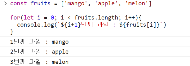forin 반복문 : 배열 요소를 하나하나 꺼내서 특정 문장 실행할 때 사용